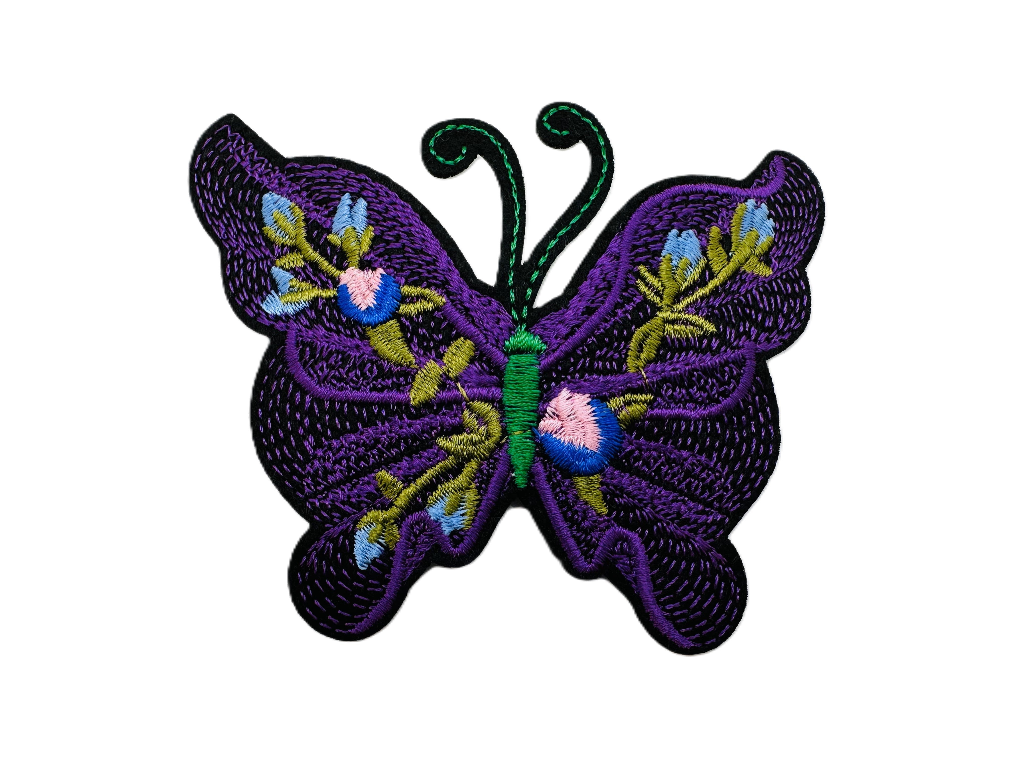 Colorful Butterfly Purple Iron On or Sew on Embroidered Fabric Motif