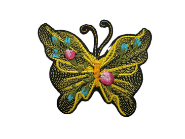 Colorful Butterfly Yellow & Green Iron On or Sew on Embroidered Fabric Motif