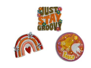 Hippie Love Peace 2 Iron On or Sew on Embroidered Fabric Motifs