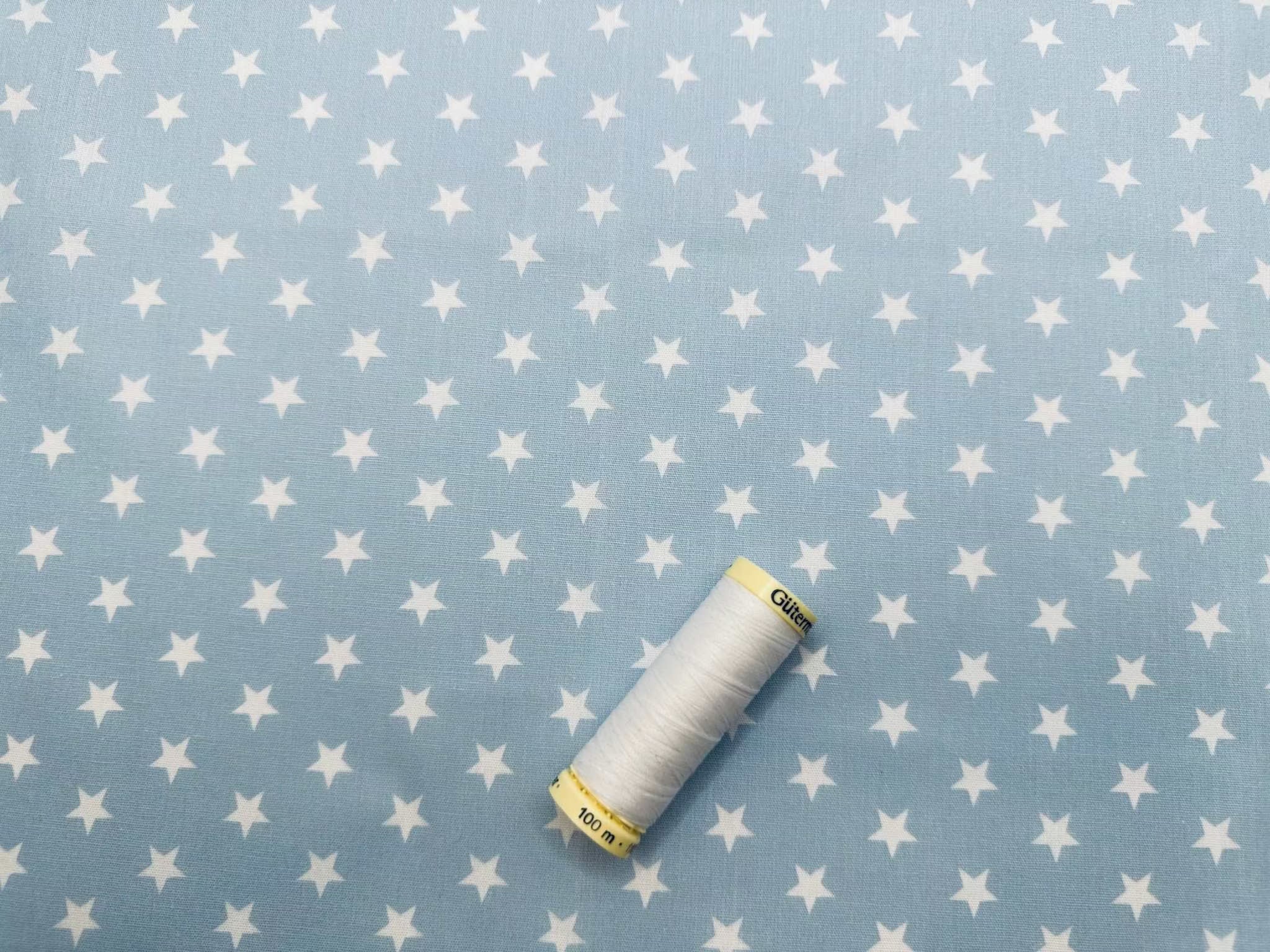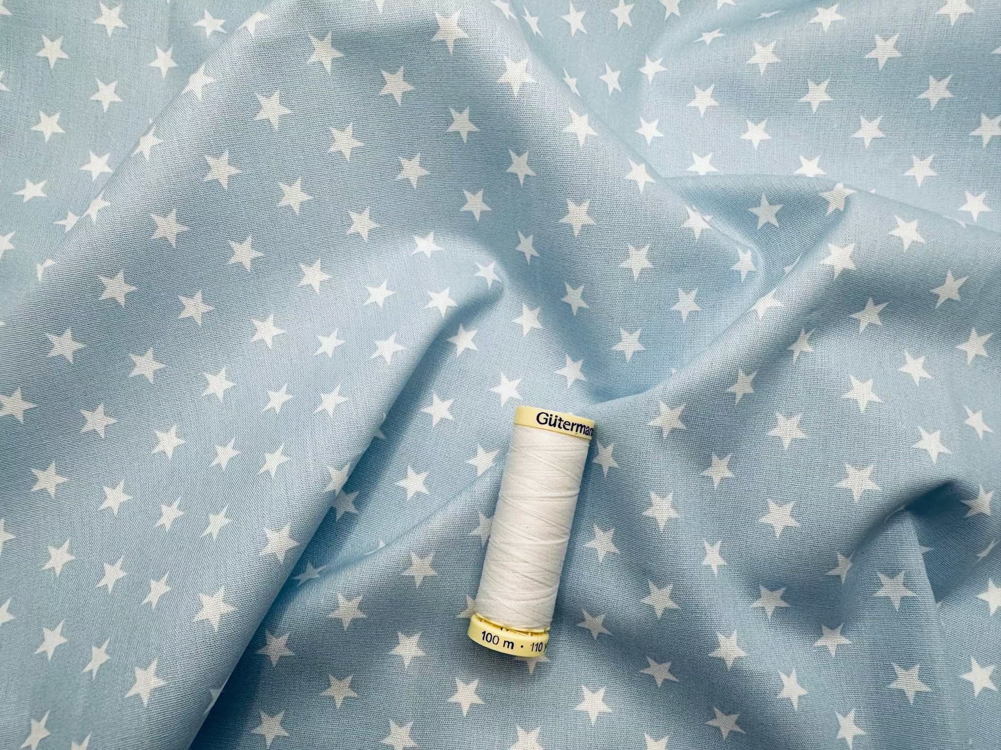 Stars 8mm White on a Sky Blue Background 100% Cotton - The Little Fabric Shop