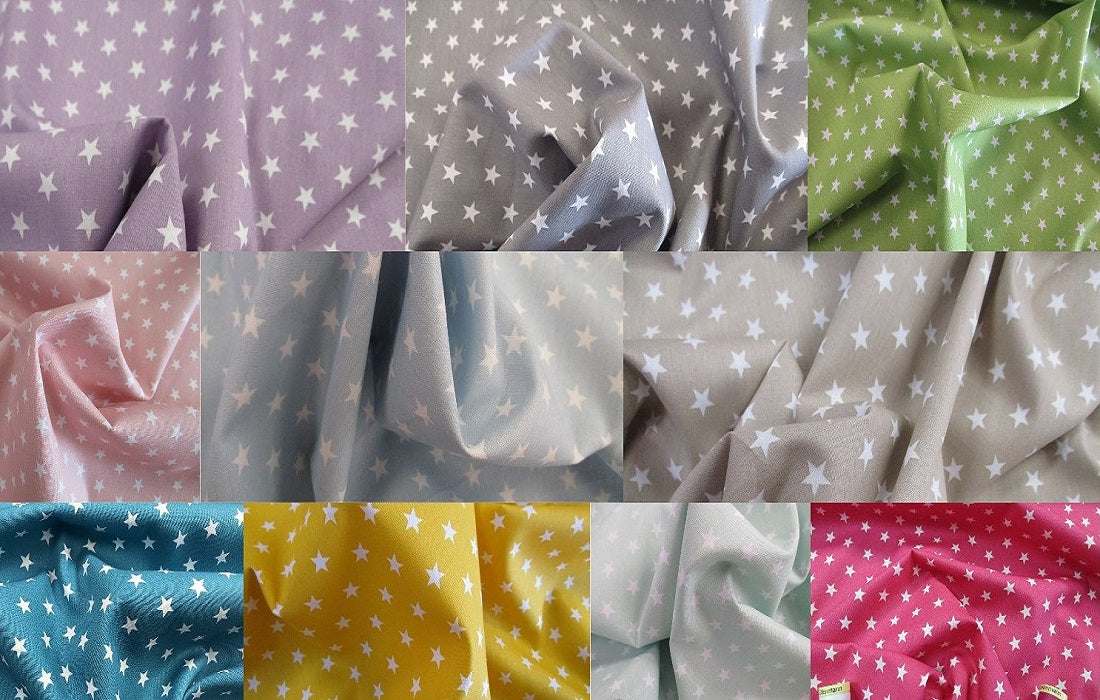 Stars 8mm White on a Sky Blue Background 100% Cotton - The Little Fabric Shop Stars 8mm White on a Sky Blue Background 100% Cotton - The Little Fabric Shop